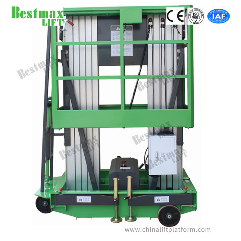 12 Meters 200kg Load Capacity Double Mast Manual Pushing Vertical Lifting Platform